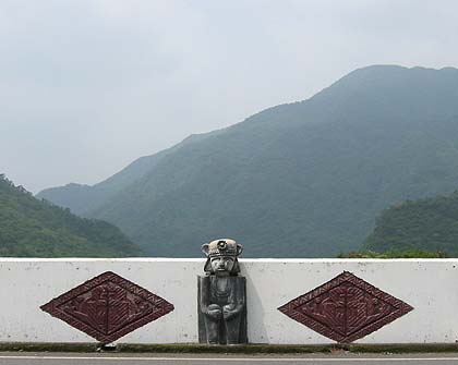 Wanchin now has parishes in the mountain districts; a practice that was foolhardy under Ching Dynasty rule and forbidden during Japanese colonial times. One such modern-day parish is that at Lai-yi, which lies about five miles south of Wanchin on Route 185. Lai-yi, with its waterfall, is Paiwan territory, whose inhabitants for many years resisted outside domination, be it from the Dutch, the Hakka, or the Japanese. With the recent resurgence of their primacy, their colourful pride in their identity is to be savoured as one wends one way up into the mountain coolness to relax. |