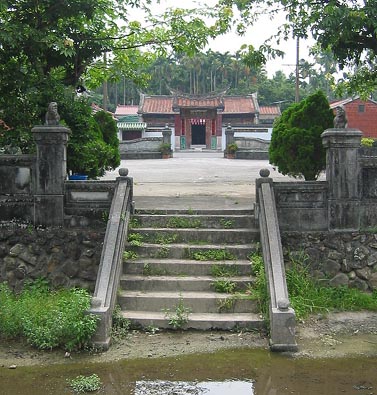 Skirting Wan-tan on Provincial Highway 27 and taking Hsien Highway 189 towards Chao-chou one soon crosses the Ai-liao River. The route prior to the insignificant river passes numerous betel-nut vendor kiosks, staffed by jauntily-clad 'bin-lang princesses', signalling the entry into the betel-nut growing areas, or the home of 'green gold'. However, before the Japanese built the massive dykes at Shui-men, the Ai-liao River was one of the mightiest and most dangerous in the Pingtung plains. The first village beyond the river is Kaoakhi, where nothing seemingly remains of the little mission In Kaoakhi the Hsien Highway 82 branches towards Chu-tien,