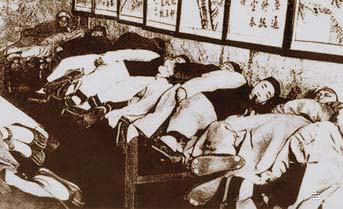 | The authorities accepted Baron Goto's advice and in January 1897 issued the Formosan Opium Regulations. Under these regulations an Opium Monopoly was set up to strictly control the import, manufacture, sale and consumption of the drug. Habitual smokers were obliged to apply for special licences in order to buy and smoke opium. These licences were only issued after the addict had undergone a medical examination to determine the degree of his addiction. | ||||||||
