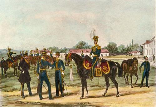 Engraving after a painting by Henry Martens of the 14th Light Dragoons in India around 1858 |