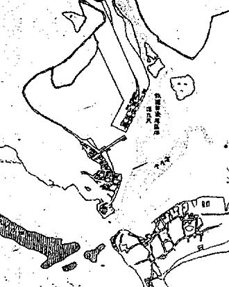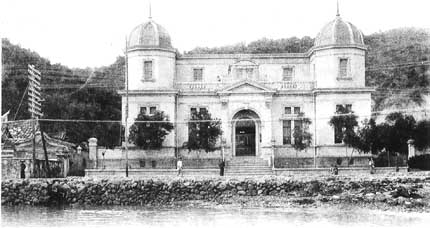 The resistance or 'banditry' was largely suppressed by 1898 when Goto came to Taiwan. However, actual resistance in the south of Taiwan did not finish until 1902 with the death of Lin Shao-mao at the southern end of the lagoon (see The Tale of Lin Shao-mao on this site). In this early period ShaoChuanTou continued to be a focal point. The Japanese set up a District Office just to the north of the clubhouse jetty (see photograph at left), and later the first Japanese bank in Kaohsiung was to be built adjacent to the jetty (see below). However, it should also be noted that the first 'modern' school in Kaohsiung was set up by the Japanese at Chi-hou in 1898. Thus retaining ShaoChuanTou as a commercial centre and Chi-hou as a social centre. |