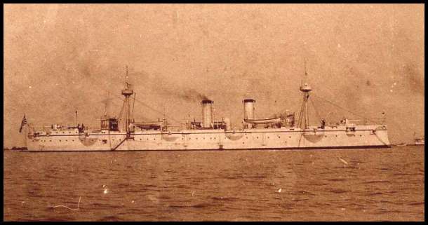 On 12 October 1895 three Japanese men-of-war appeared off the entrance to Takao Harbour. The Japanese ships included the flagship Yoshino and the intimidating iron-clad cruiser Akitsushima (see photograph below) which had just seen previous action off Port Arthur in the Sino-Japanese War. Although the Akitsushima was Japanese-built, the Yoshino was British-built. Ironically, the ship had originally been built for the Chinese Navy, but when China failed to make payment the ship was sold to the Japanese Navy. |