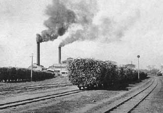 However, demand in Japan was constantly increasing. The progressive Chief of Civilian Administration (from 1898 to 1906) Goto Shimpei encouraged Japanese companies to invest in the industry, while recruiting able young officials to provide agricultural and technical expertise on sugar manufacture. With the development of the rail network and the assertion of full control over the southwestern Taiwan plains, the way was open for the construction of massive modern sugar mills and the introduction of high-yielding strains of sugarcane. By 1907 the sugar output had returned to the 1880 level, and by 1910 had reached an astonishing 465 million lbs. |