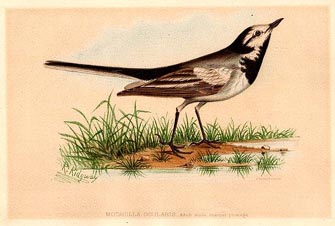 Chromolithograph by Robert Ridgway of Motacilla ocularis or Streak-eyed Wagtail |
